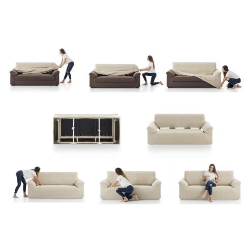 Prevleka se zaradi elastičnih vlaken prilega večini sedežnih garnitur, načelo izbire je povsem preprosto, bolj ko je elastična prevleka nagubana, bolje se bo prilegala pohištvu.